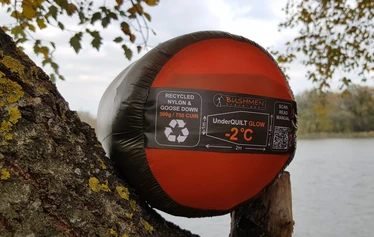 Untuvainen alushuopa riippumattoon, eli Bushmen Ultralight Underquilt Glow -2 °C. Alushuopa painaa n. 550 g, josta täytteen paino on 300 g. Täytteenä on käytetty kierrätettyä puolalaista untuvaa. Alushuovan pituus on 2 m, jalkopäästä se on 100 cm m levyinen ja hartiaseudulta ruhtinaalliset 140 cm. Glow on suunniteltu eritoten pitämään ylävartalo lämpimänä, sen takia sen on erityisleveä toisesta päästä. Alushuopa soveltuu maksimissaan 190 cm (5 cm / pääty jää alushuopaa yli) pitkille, toki moni voi haluta, että alushuopa on reilusti pidempi, kun nukkuja.