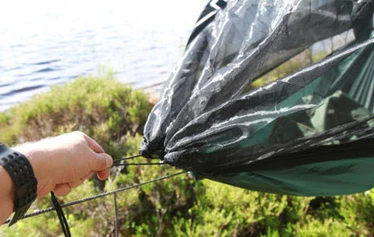 1. Riippumatto, jossa on kevyet Whoopie slinggit kiinnitystä varten.